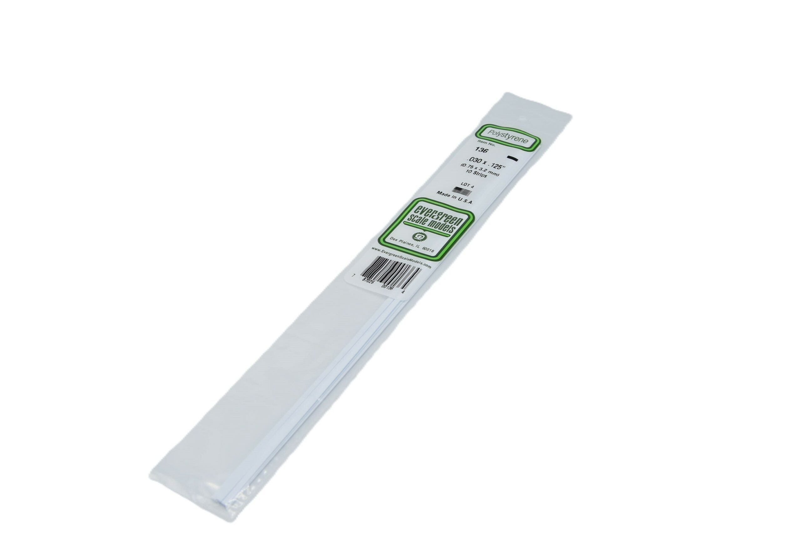 Evergreen Scale Models 136 Strip 0,75mm x 3,2mm Polystyrene